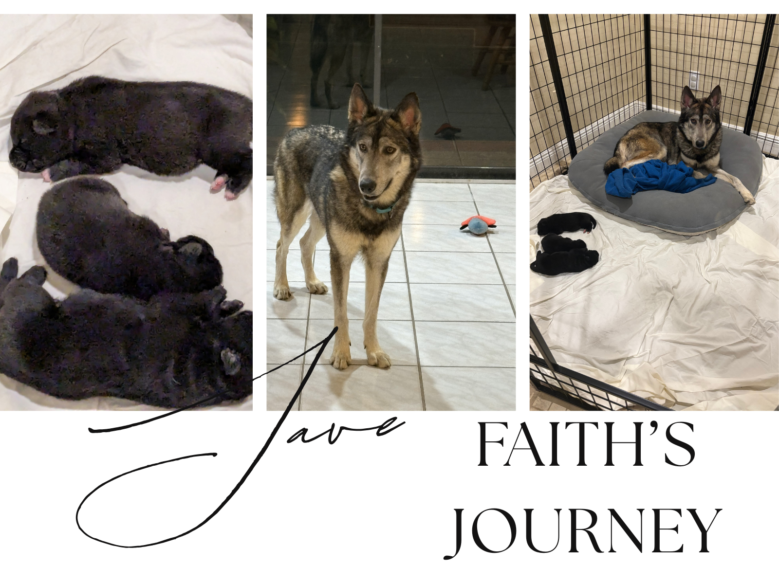We were contacted by Tail Wags, Inc. in West Virginia about a wolfdog who had just been pulled from a shelter as she was actively giving birth. Knowing they did not have experience with wolfdogs, they reached out to us for help. By Thursday, Faith and her three newborn puppies were safely with us in Naples.