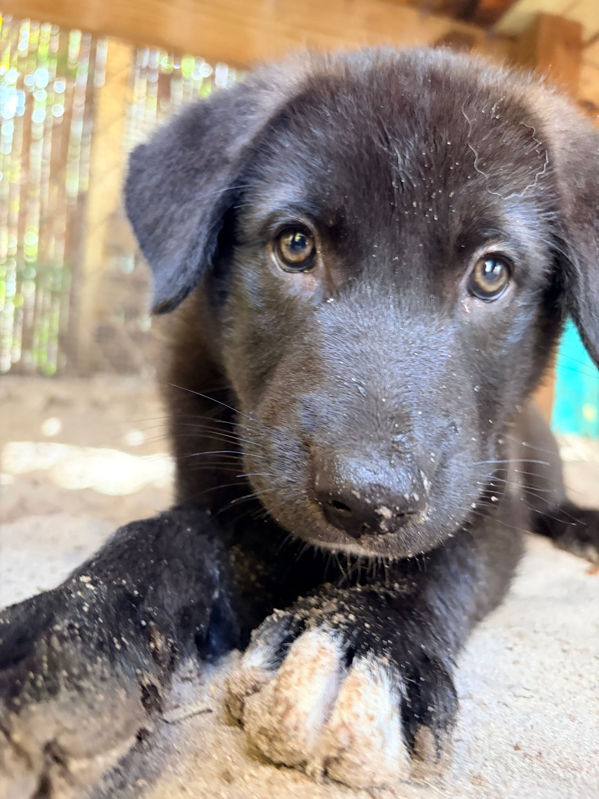 Chai was named after one of our beautiful full wolves whom we lost over the winter, Chatima, who shared a similar personality. Chai is the unspoken “leader” of the puppy trio. She is confident and usually the first to make a move into the unknown. She is assertive and knows what she wants and goes after it. She is the only one with white tipped toes and a small amount of white fur on her chin and tail. She was the first (and only) to hop into the water tub when they were first introduced. Chai also sleeps like a rock! She is currently, at 10.5 weeks old, 24.4 lbs. I lovingly call her “Chonky Chai”. While on our walk today, she wanted to go right up to the big wolves and sat her butt down in front of their enclosures and didn’t want to go back to her own. Born 1/10/2026