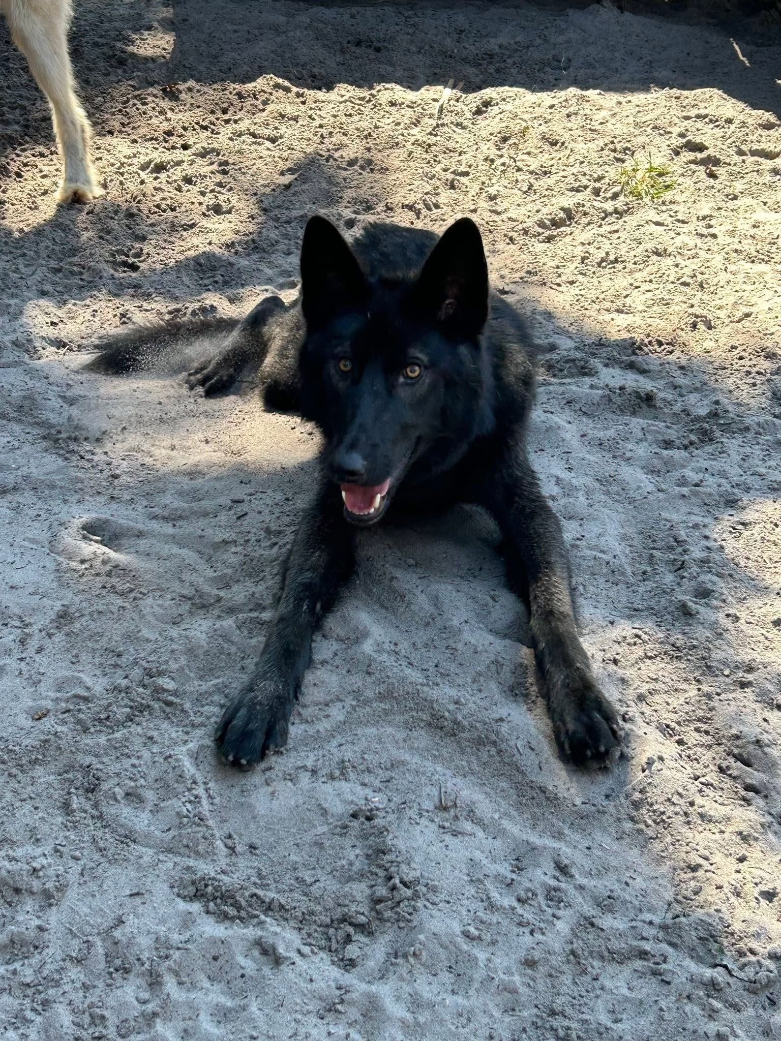 At 61% wolf and 39% German Shepherd Dog, Sequoia carries the intelligence, sensitivity, and alertness of both breeds. She currently weighs about 60 pounds and is still growing into her long legs and beautiful frame. Her celebrated birthday is 10/10/2024, making her a lively youngster with plenty of potential.