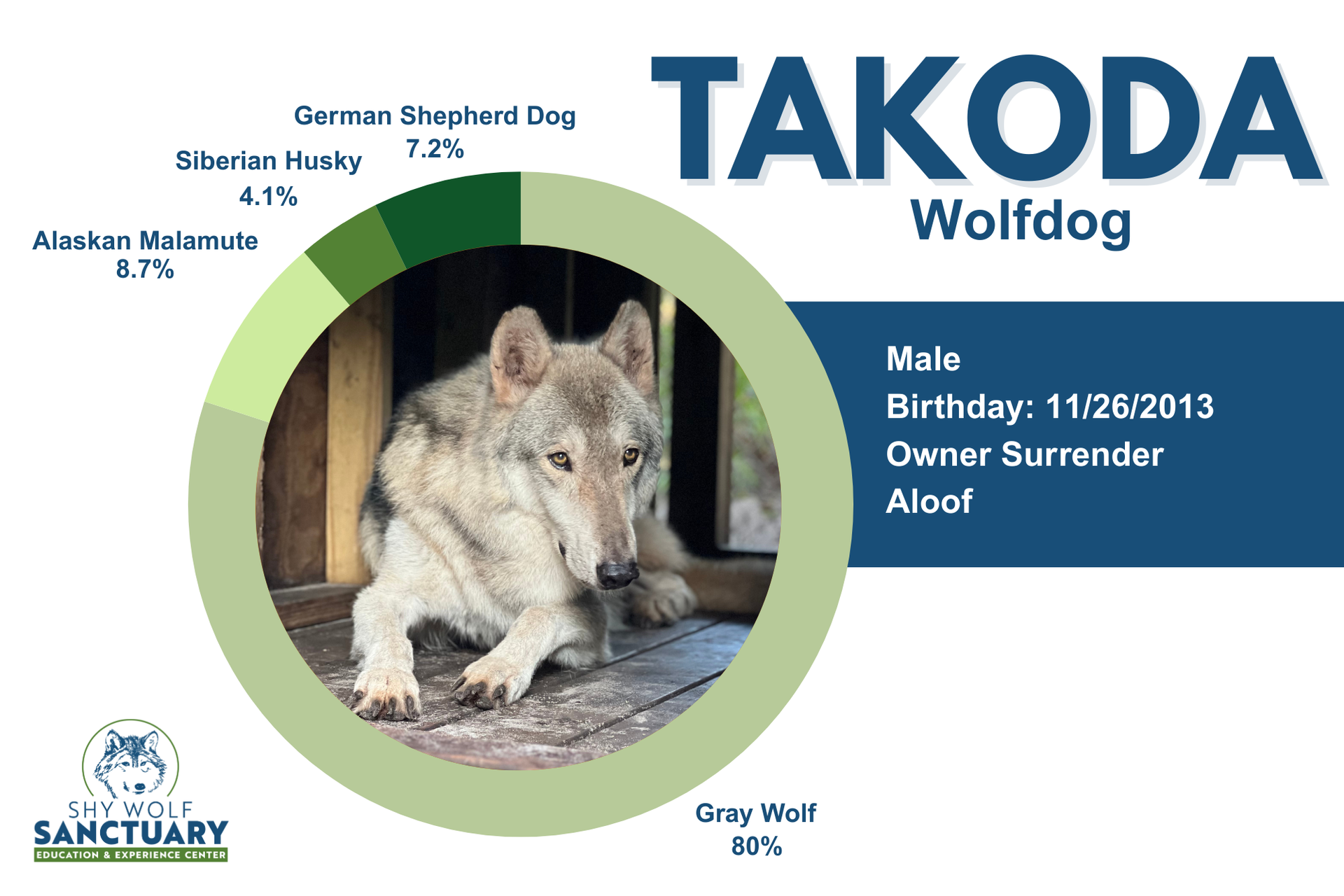 Takoda and Nikita will remain at Shy Wolf Sanctuary, while Apache Dakota, Bear and Cheyenne start a new wonderful life! Takoda now lives with Chatima.
